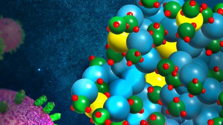 Scientists have developed tiny nanocrystal particles made up of isotopes of the elements lanthanum, vanadium, and oxygen for use in treating cancer. These crystals are smaller than many microbes and can carry isotopes of elements such as actinium and radium. These isotopes undergo radioactive decay, emitting alpha particles (helium nuclei) that destroy cancer cells in the process. The individual isotopes that the nanocrystals carry are too small to see. So, the researchers used advanced computer simulations and data from experiments to understand how the isotopes are arranged inside the nanocrystals. This knowledge will help researchers design more effective radioactive nanocrystals that target and kill tumors.