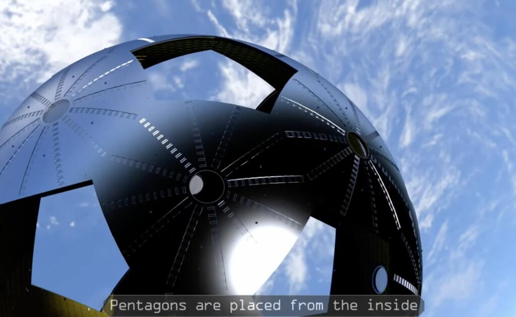 Think Orbital will use a CanadaArm to assemble hexagonal and pentagram pieces that will be stacked during launch. They will be assembled into large sphere shaped space stations as seen above.